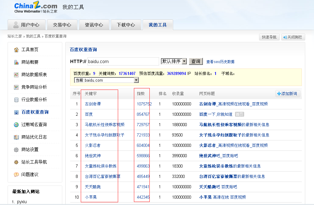 其他同类工具类网站道理也是一样的,可以查自己网站的,也可以查竞争对手网站的。
